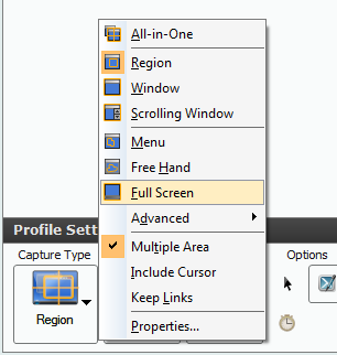 • توسط ابزار ششم که The entire screen نام دارد، می توانید از کل Screen مانیتور خود و هر صفحه ای که در حال حاضر در آن نمایان است عکس بگیرید و آنرا ذخیره کنید. خب این هم 6 قسمت موجود در Basic Capture Profiles ( 6 ) . اما 6 ابزار پیش فرض نیز در قسمت Other Capture Profiles ( 6 ) داریم، که به توضیح آنها می پردازیم