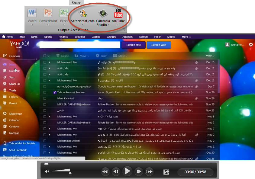 همچنین وقتی فیلمی از فعالیت های انجام شده از رایانه میگیریم و به snagit editor میفرستیم میتوان آن فیلم را به همان شکل ساده به صورت فیلم به بعضی از نرم افزارها و حتی به طور مستقیم به اینترنت یا شبکه های اجتماعی بفرستیم